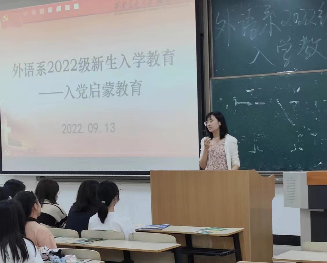 9月13日下午,外语系学工办在E100开展入党启蒙教育、团学教育、校纪校规教育。首先,学院国际交流项目办的负责老师详细介绍了学院现有双学位项目的情况、培养目标、就业前景和升学优势,引导同学们设定目标、做好规划,利用出国留学的机会开阔眼界、增长见识。随后,外语系员工党支部书记关天骄就端正入党动机、入党具体流程、如何成为一名合格的共产党员等方面进行入党启蒙教育,希望同学们提高政治觉悟,积极向党组织靠拢。外语系团工委书记韩蓉对外语系团学活动进行展示,鼓励员工积极参加社团活动,勇于展现自我,提升综合能力,同时对智慧团建和青年大学习提出要求;最后,辅导员老师为员工介绍了校纪校规、奖助学金政策和课外学分制度,帮助员工更快熟悉学院的各项规章制度,提早做好规划。