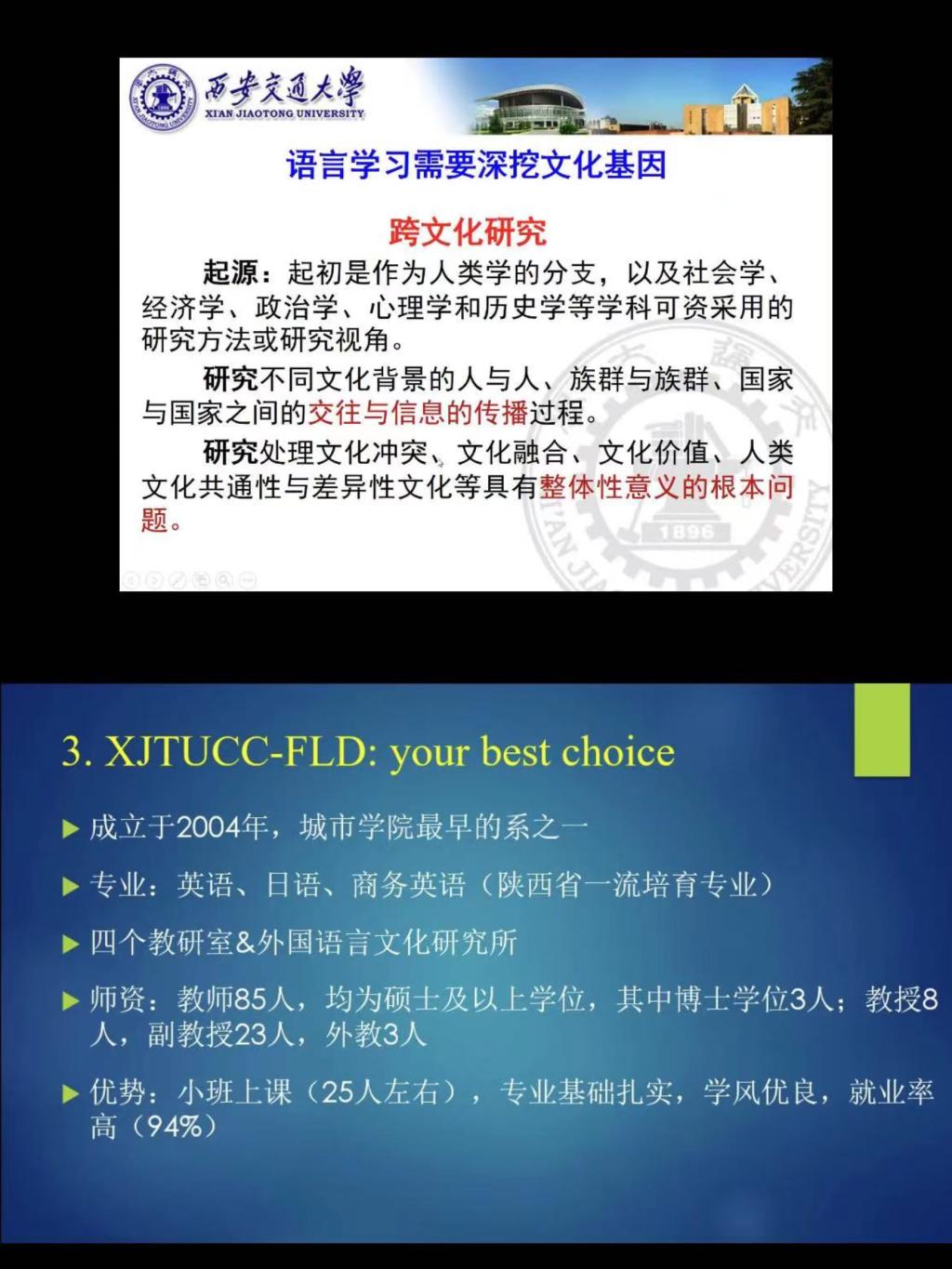 9月2日晚,外语系在腾讯会议召开2022级新生交流会暨专业认知教育讲座。外语系主任郭继荣教授、系副主任徐素云副教授、英语专业教研室主任胡婷副教授、日语专业教研室主任吴夫迎主任助理、2022级全体新生及部分家长参会,会议由员工工作负责人关天骄主持。外语系副主任徐素云副教授从专业概况、人才培养、团队力量、课程体系、教学条件、科研成果、就业前景、毕业条件等方面进行详细讲解,结合英语、日语、商务英语专业培养方案对新生进行专业知识渗透,进一步激发员工的专业兴趣,强化专业意识。外语系主任郭继荣教授鼓励同学们语言学习要深挖文化基因,树立外语学习的自豪感、自信心。提到外语作为一门多元融合的学科,变化无穷、可能性无限,有助于同学们探索更高层次的人生价值,建议大家利用外语系提供的学业导师平台,全面了解外语专业与社会需求、专业自身优势,探索自己感兴趣的方向。