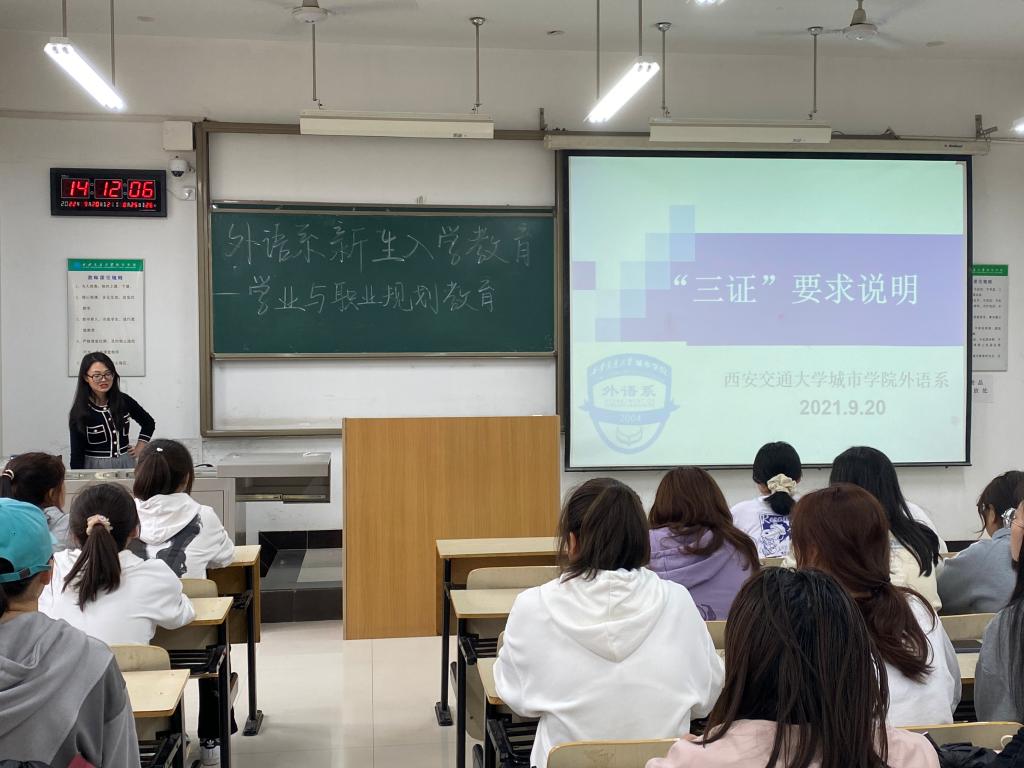 9月20日下午,外语系在D409开展学业与职业规划教育、三证说明会,英语专业教研室主任张一帆老师结合专业培养方案对毕业资格条件、四六级考试、专业等级考试、“三证”等作了详细介绍。张老师引导新生树立正确的人生观、学习观、就业观,鼓励同学们能够遵从自己的内心结合自身优势,从制定一个小目标开始,做好学业生涯、职业生涯规划。会后,辅导员组织新生开展“书写青春愿景,执笔寄信未来”特色书信活动,鼓励新生切实提升自主学习意识,明确自身目标理想,坚定踏实走好老员工活每一步。