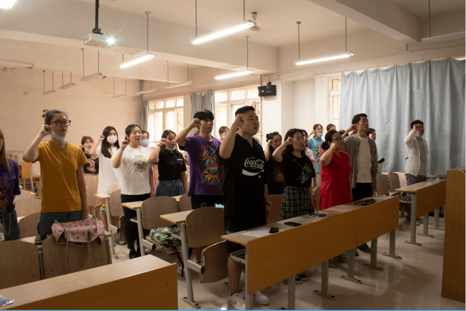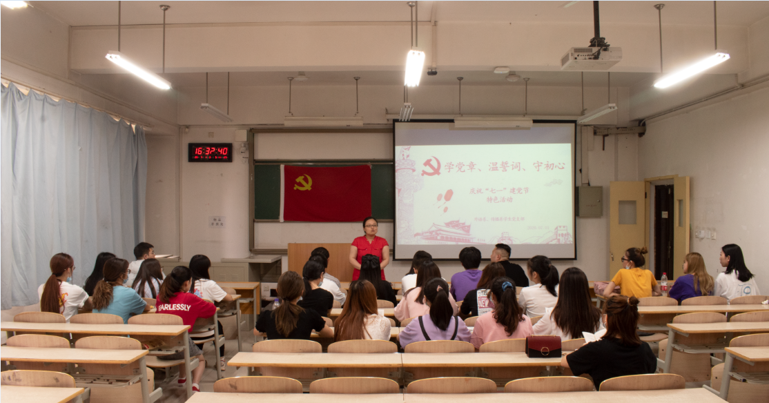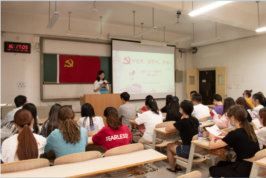 为了庆祝中国共产党建党99周年,太阳集团官网外语系、传播系员工党支部于7月1日下午16点在教学楼D107开展了主题为“学党章、温誓词、守初心”的“七·一”建党节特色活动。本次活动由党支部书记张天主持,组织委员杨耀聪、宣传委员刘牧原以及党支部全体党员共同参与。